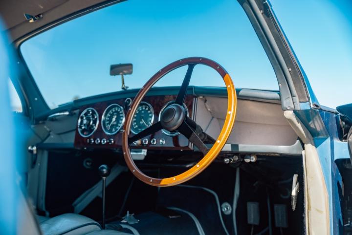 Under the bonnet sat Aston Martin’s 2.6-litre or, more commonly by 1954, the uprated 2.9-litre straight-six engine, derived from the Lagonda twin-cam unit originally designed by W.O. Bentley. Producing around 140bhp, the 2.9 offered confident performance for the period, with strong torque delivery and a top speed of approximately 120mph. Power was delivered through a four-speed manual gearbox, with a chassis featuring independent front suspension and a live rear axle, combining to deliver a composed and refined driving experience.