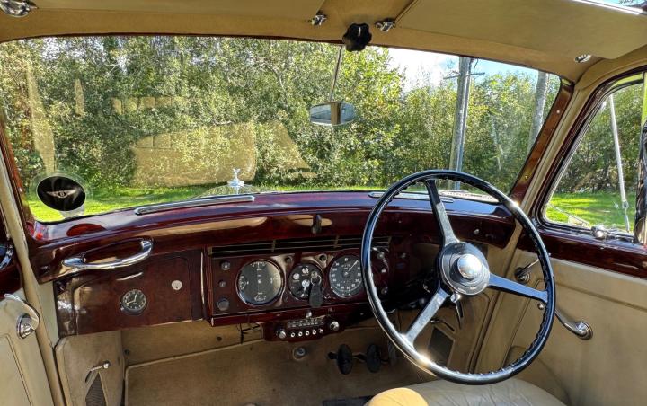 A clean, correct and very appealing example, smartly finished in black and deep red, with excellent beige leather, carpets and headlining. The wood work too, is lovely, all adding up to a charming package. The paintwork exhibits some cracking and marks in places, and will perhaps ideally need attention at some point, but nevertheless, the overall appearance is smart and attractive, just as it is. The car is equipped with correct lamps (not always the case), original ‘Ace’ type number plates, has a pair of fitted suitcases in the boot, various correct tools, comes with a car cover, and has been upgraded to flashing indicators, front and rear. Factors such as these can make a significant difference to the appeal of a car, and this example is no exception! Between 1987 and 2024, a total of £77,000 has been spent on maintenance and repairs, some minor, some major, all documented in the history file, which also includes the original handbook, a run of MoT certificates (the earliest from 1963), and various other paperwork. Fitted with well-suited Michelin radial tyres, serviced and MoT tested.