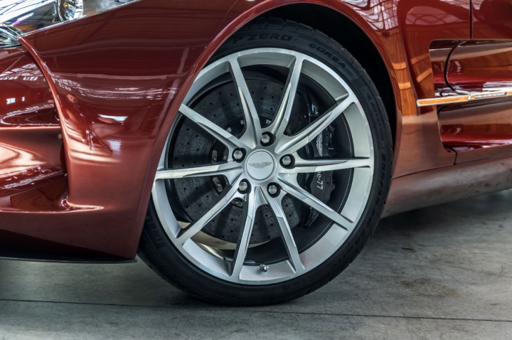 Die unglaubliche Form und Haltung des One-77 fallen sofort auf. Mit einer Breite von 2.204 mm inklusive der Spiegel verleiht die schiere Breite dem Auto eine beeindruckende Haltung. Aston Martin gestaltet ihre Autos nach dem magischen Prinzip der "goldenen Proportionen", das den Gesamtumriss ihrer Fahrzeuge genau richtig erscheinen lässt. Der One-77 ist vielleicht dasjenige, das am besten dazu passt.