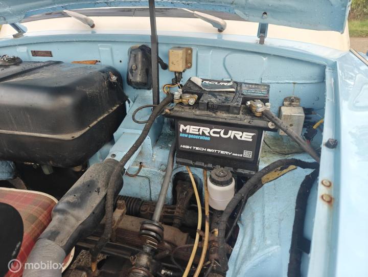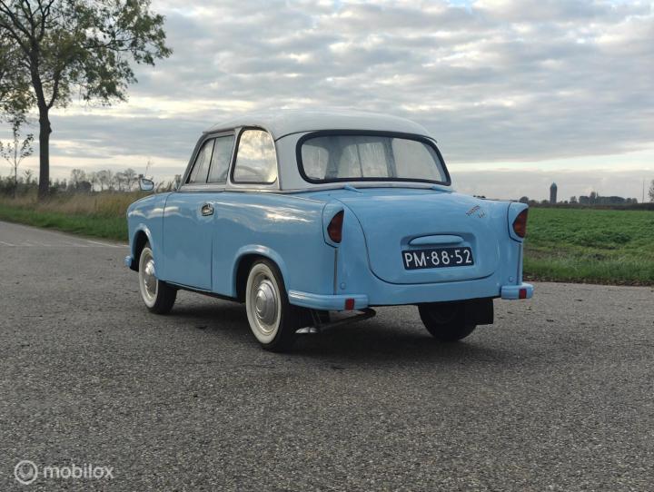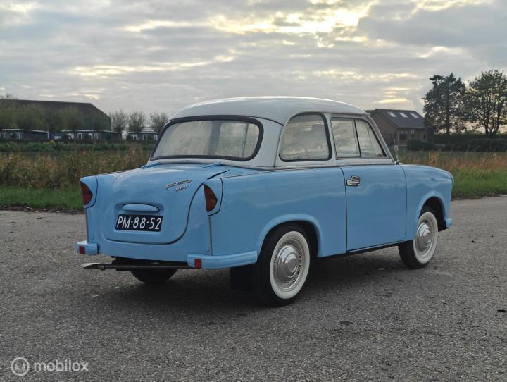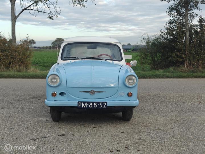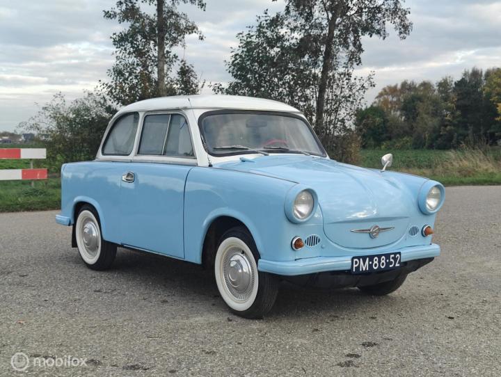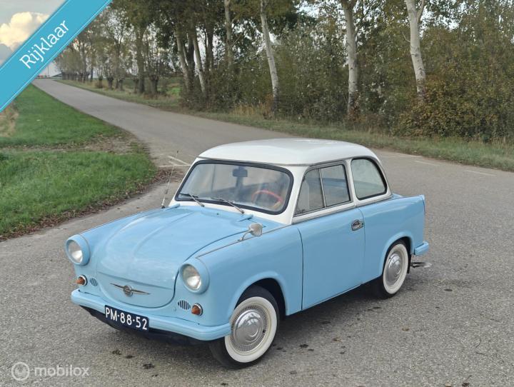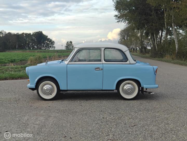 Hoe leuk is dit, baby blauwe vroege Trabant die fantastisch rijdt. 80km/u is goed haalbaar, schakelt heel nauwkeurig. Start goed..motor heeft net uitgebreide beurt gehad.