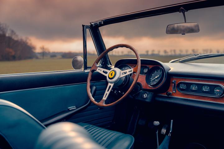 After being traded back to the selling dealer, M.G. Crepaldi S.a.s. in Milan, the 275 GTS was purchased by its second owner, Cesare De Lucchi of Varese. De Lucchi would go on to own the 275 GTS for the rest of his life, and it was brought to Ferrari’s 50th anniversary celebrations in Rome and Maranello in May of 1997. Approximately five years later, the car’s interior was retrimmed by Fratelli Luppi of Modena in blue leather. It was granted Ferrari Classiche certification in 2004; this confirmed that the car retains its original chassis and engine