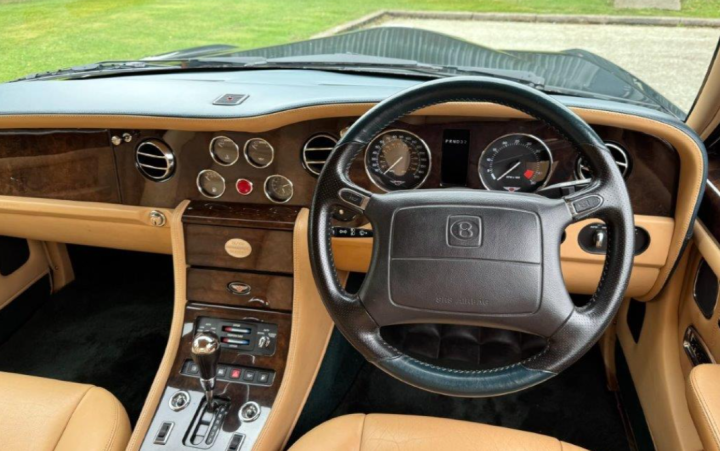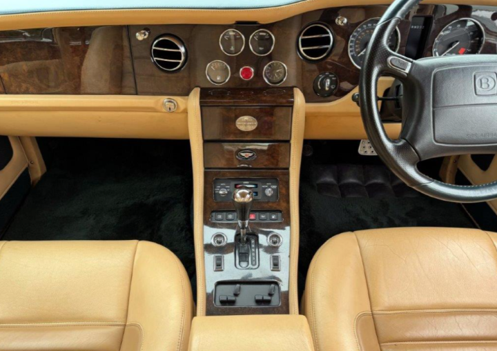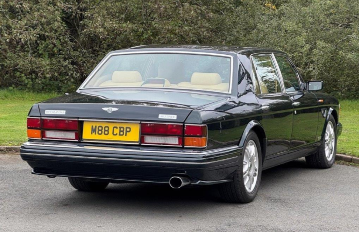 A lovely example of a ‘special edition’ ‘R’ Mulliner version of the Brooklands, number 88 of just 100 built. Very attractively finished in ‘Black Emerald’, which is a delightful, metallic green, so dark that it almost looks black under certain lighting conditions, complemented by duo-tone tan interior, dark green carpets, piped tan, with dark green lambswool over rugs. The car has significant service history in the stamped service book, as well as invoices and a long run of MoT certificates, which together confirm the mileage as 87,000 from new. Much admired, excellent condition, and a rare opportunity.