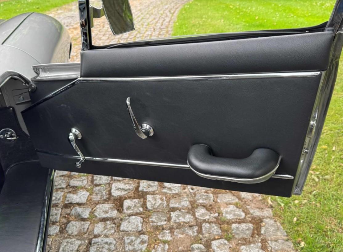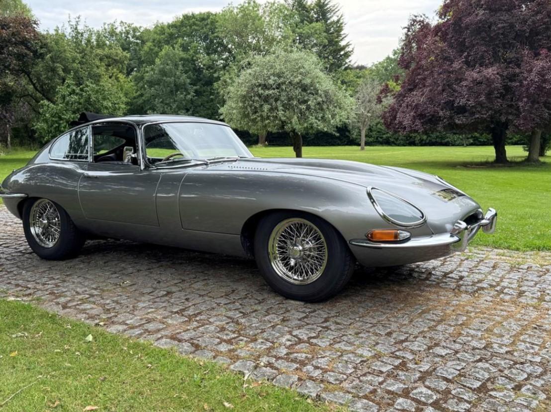1965 Jaguar E type series 1 4.2 Fixed head coupe finished in Aston Martin in Sky Silver and tastefully trimmed with a perfect Black hide interior and the benefit of a full length Tudor Webasto Sunroof finished in black mohair. This is an original UK supplied example and the present owner commissioned the well-respected Jaguar restorers, Southern Classics to carry out a complete rebuild of this car back in 2011 to “Fast Road Specification”, mainly for the purpose of continental touring. This process included a full engine rebuild by Classic and Modern Engine services and enhancing the engine performance to include high compression pistons, a fully balanced crankshaft and con-rods and clutch assembly with further additional gas-flowing of the cylinder head, all of which has resulted in increased brake horse-power and low-down torque. The original 4 speed gearbox was also completely rebuilt which coupled with what we believe to be a high ratio rear axle has resulted a low engine revs when cruising at high speeds. The braking system was suitably improved with the use of Coopercraft brake calipers and an improved servo system. The original cast exhaust manifolds have been replaced with free flow stainless steel manifolds, coupled to a full stainless steel exhaust system . At the same time, the car was the subject of a bare metal repaint and a tasteful retrim in black leather. The car sits on slightly wider than standard stainless steel chrome wire wheels, shod with Avon Turbospeed radial tyres for improved road holding. With this beautiful and practical classic E type is a detailed history which records most of the vast expenditure over several years. Please call for a more detailed specification. One of the very best available at £120,000