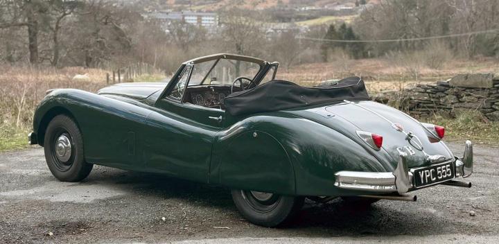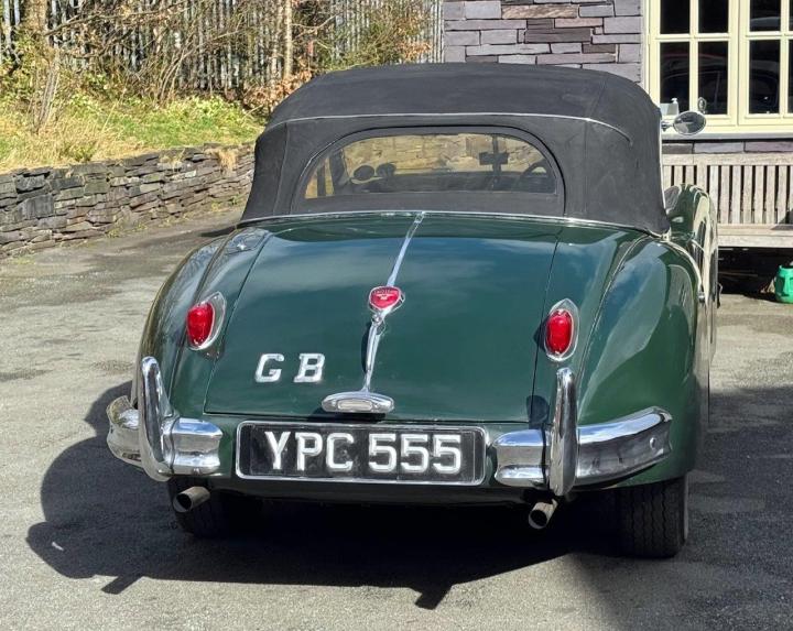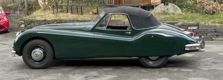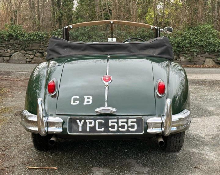 A totally correct and exceptionally original example of a rare UK market, RHD drophead, supplied new in 1955 by The Woodcote Motor Co, Epsom. Sound condition, cosmetically mature and appealing, retaining original, mellowed tan leather interior, and of nicely understated specification with disc wheels and spats. The paint shows its age in a quite charming way, the chrome work is very good to excellent, and the overall appearance is seductively appealing. One owner from 1974 to 2015, and one since. Just 6,000 odd miles covered during those fifty years! Recent work has included a new stainless exhaust, new clutch, complete re-wire and a good deal more besides. Comes with a Jaguar heritage certificate confirming original specification and colour scheme, and a file of invoices from recent years showing parts expenditure, etc. Driving very nicely, sounding great, and fun to whizz around in! Very few survive in such undisturbed condition!