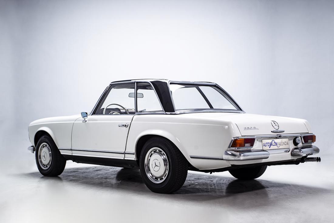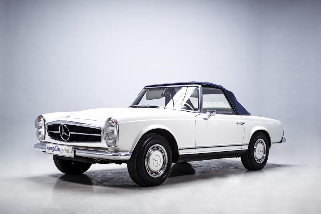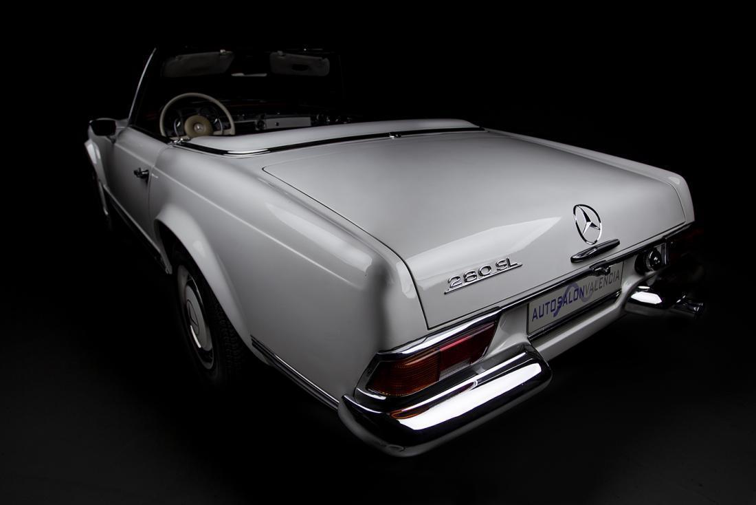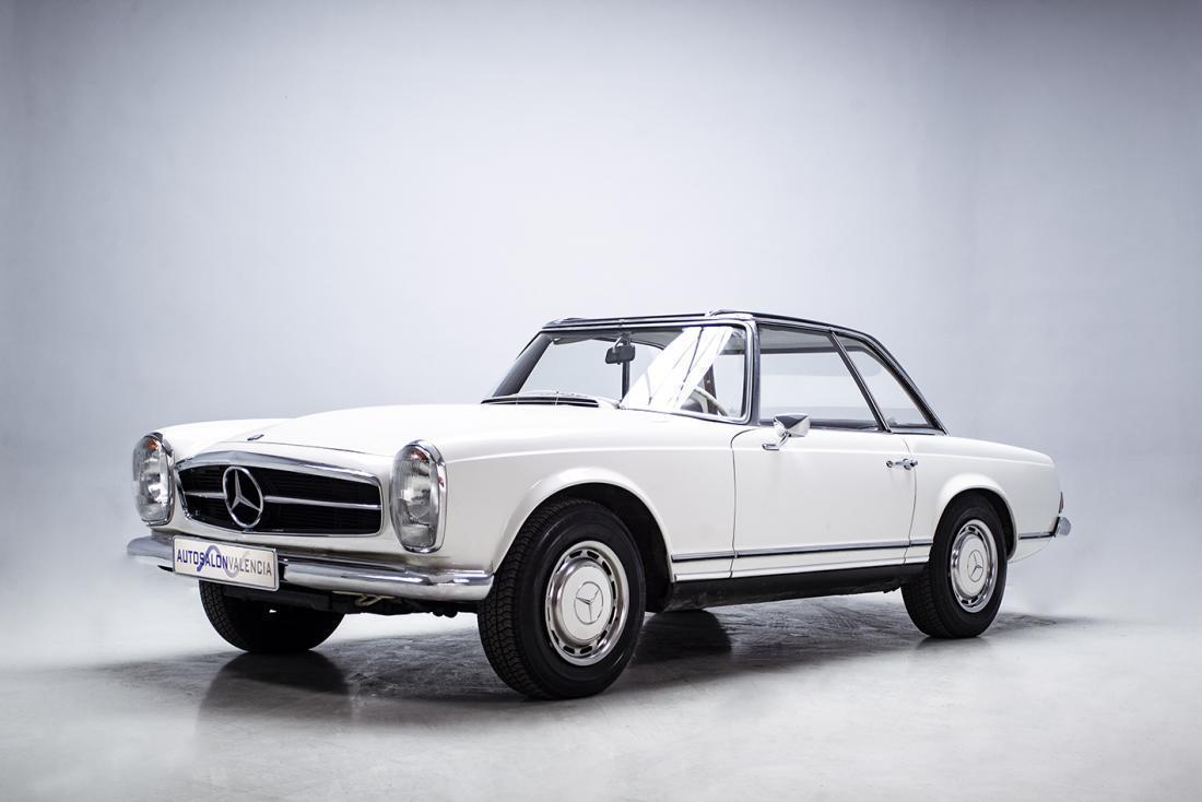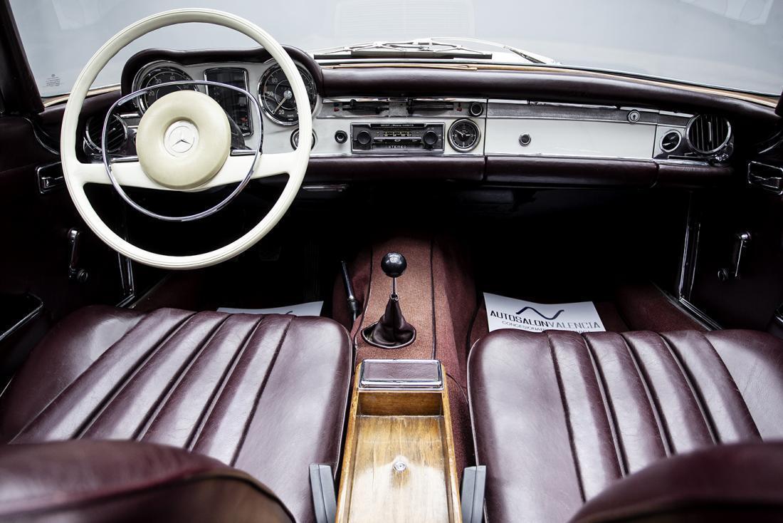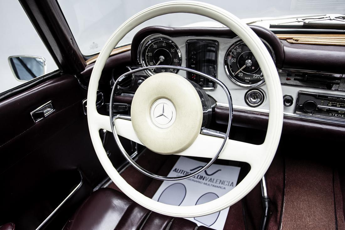 MERCEDES-BENZ SL 280 PAGODA de 1969. VIN: W113 044 1 0 006594 W 113 => MODELO PAGODA 044 =>SL 280 1 =>VOLANTE A LA IZQUIERDA 0 =>CAMBIO MANUAL 006594 =>Serial number - Ficha Técnica|Datos Mod.280SL Motor: Posición delantera ,6 Cilindros Cilindrada: 2778cc Diámetro x Carrera: 86.5x78.8m/m Compresión: 9,5:1 Potencia: 170cv a 5750 R.p.m.. Distribución: Arbol de Levas en Cabeza, 2 Válvulas por cilindro Alimentación: Inyección mecánica Bosch Cambio: 4 Velocidades Suspensión delantera: Independiente, Muelles helicoidales,amortiguadores telescópicos y barra estabilizadora Suspensión Trasera:Independiente de semi ejes oscilantes,Muelles helicoidales,Amortiguadores hidráulicos,Barra estabilizadora. Frenos: De disco en las 4 Ruedas , Servofreno y doble circuito Llantas: De chapa 6x14 Neumáticos: Radiales 185 HR14 Dimensiones lxanxal: 4285 x 1760 x 1305 Depósito Combustible: 82 Litros Peso: 1.415 Kg. Velocidad máxima: 200 Km/h. Unidades construidas 280SL: 23.885 Unidades *Este anuncio no es vinculante, puede contener errores, se muestra a título informativo y no contractual.*