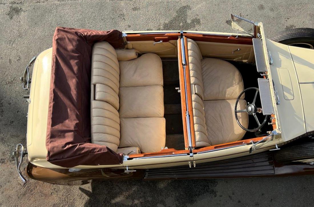 An unusual, very stylish & possibly unique open car, of an interesting and particularly handsome design, being relatively sleek, with spats to the rear wheels, quarter bumpers to the rear, twin side-mounted spare wheels, louvred bonnet & scuttle and ‘dropping’ waistline moulding; all complimented by a correct set of lamps and long trumpet horns. All six wheels are fitted with Ace wheel discs, which we feel suit the design nicely. The car is in good, smart condition, the paintwork, chrome work, leather are all very good and nicely presented, the coachwork is good structurally with excellent door fits, etc. It has recently been fitted with a new cylinder head and is smartly presented under the bonnet. According to the factory records, the paintwork was originally light green throughout with "speckled grey leather and hood material to match". Amongst the documents in the car's history file are several photos taken when new, as well as original sales documentation, Jack Barclay invoices, etc. All in all, a rare opportunity to acquire 'something different'. Offered serviced, prepared, running nicely, driving well and MoT tested.