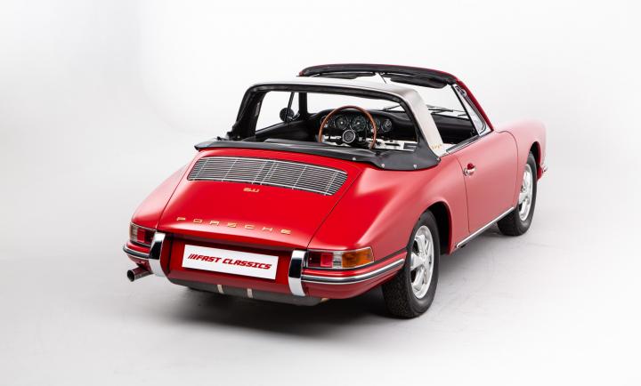 The light fabric roof and Targa soft top set a quite unique tone for this age defining classic and indeed only 925 units with S engine, short wheelbase and soft window were produced by Porsche between the end of 1966 and 1968.