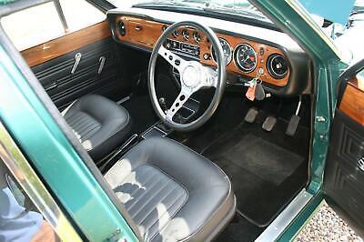 This particular example was first registered in 1970, finished in Ford Aquatic green metallic, and has the full black leather and wood trim which still feels,smells & looks like new .