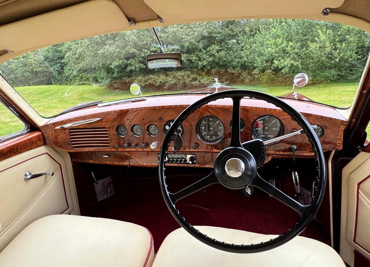 A late example of the iconic fastback, benefiting from the 4.9 litre engine, which was only fitted to ‘D’ and ‘E’ series cars. This one also has an automatic gearbox and the larger, better padded seats, making the car very easy, comfortable and enjoyable to drive. The car is in lovely condition and beautifully finished in the original colour of metallic Regal red, and re-upholstered in recent times, including red piping to the leather, also as per original specification. The woodwork is gorgeous, with lovely veneers incorporating cross-banding ornamentation, and the carpets and headlining are absolutely excellent and very fresh. The engine compartment is clean, correct and well-presented, showing care and attention, and is just the way we like to see them, not 'over the top' or over-prepared. Rectification and repair work in recent years by a specialist amounted to more than £18,000, and we have ourselves just carried out a light engine refurbishment, including new pistons, bearings, etc. The car has been with one family for 44 years, is all correct, driving very nicely and is in excellent condition throughout. Offered, prepared, serviced & MoT tested.