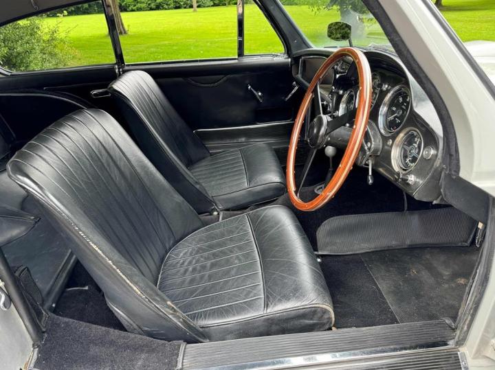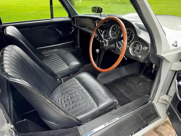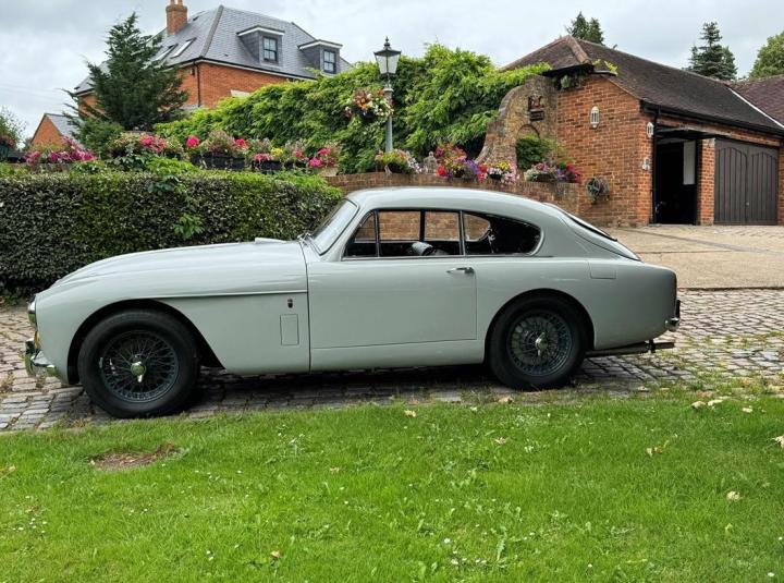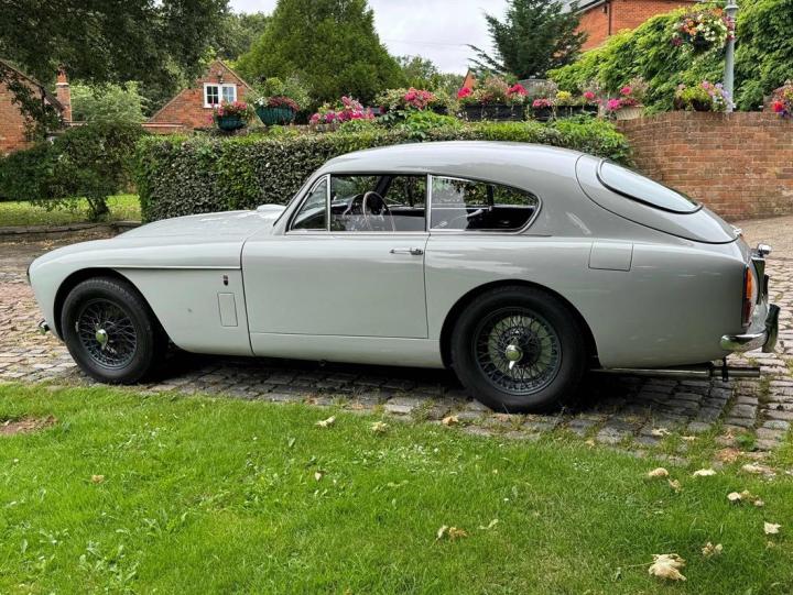1959 Aston Martin DB MkIII finished in original Snow Shadow grey with dark blue hide interior and sitting on 72 spoke dark blue painted DB4 wire wheels. Built at the Feltham factory in the final year of production, the MkIII was a considerable advancement on the previous models with a smoother, less angular bonnet shape which was also reflected in the redesigned instrument binnacle. This model also benefited from the engine being redesigned with larger oil galleries together with an improved cylinder head increasing the horsepower to 178 BHP for a standard car with twin exhausts. This car has been the subject of huge expenditure over the years including a complete engine rebuild and bulkhead detailing with photographic evidence. Also fitted is the essential overdrive enabling the car to comfortably cruise at 80 mph whilst only revving at 3000 rpm. Super to drive with no apparent faults.