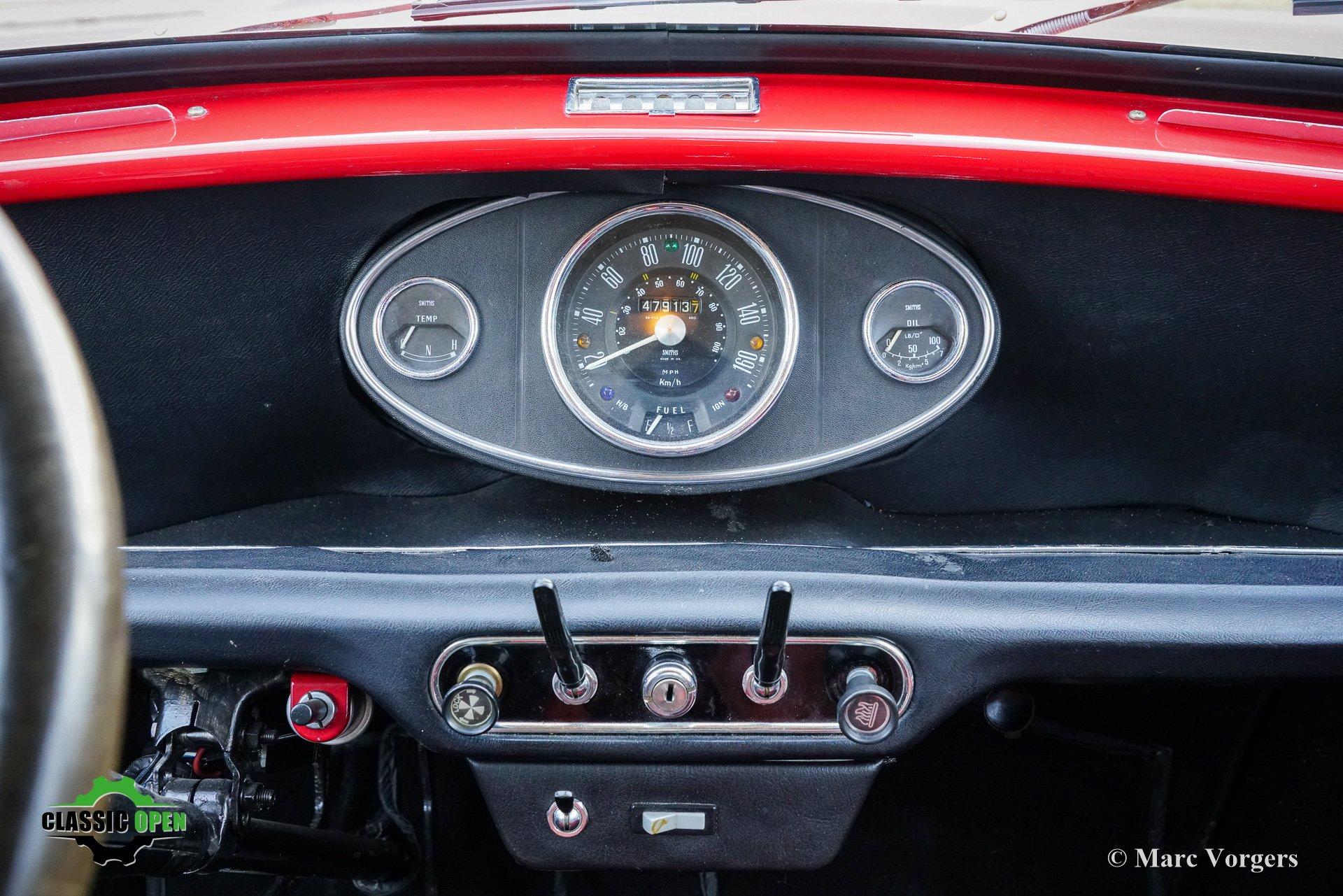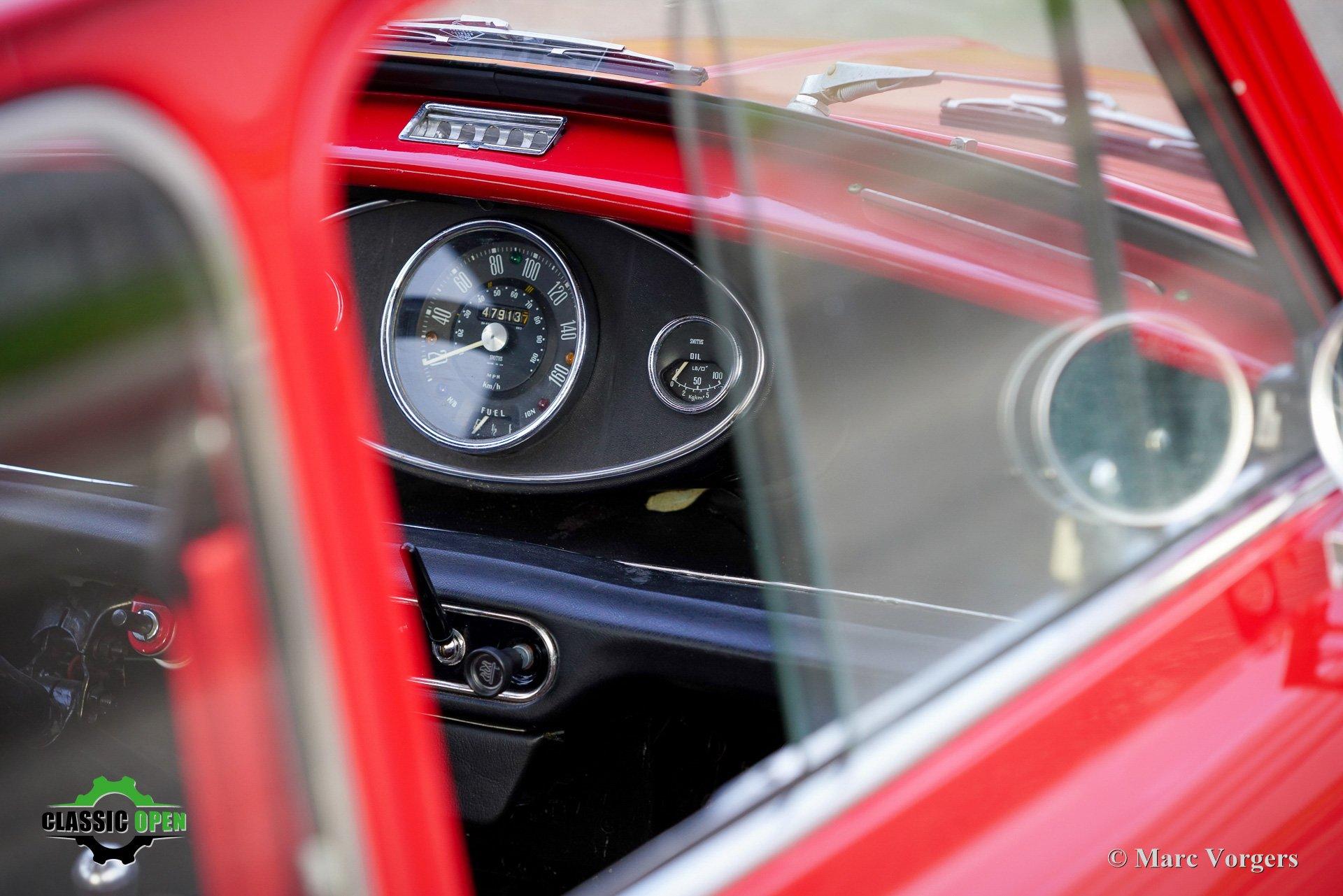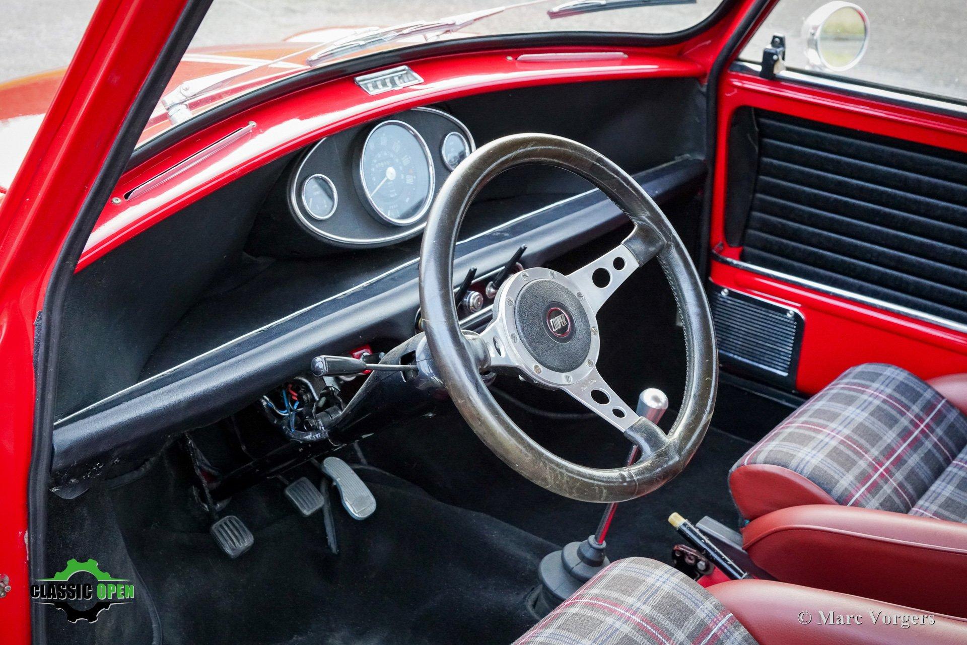 Deze Morris Mini Cooper is in het verleden gerestaureerd en gereviseerd. De auto is voorzien van een krachtige Cooper S 1275 cc-motor met twee S.U.-carburateurs, elektronische ontsteking en andere upgrades om de Cooper S-specificaties te benaderen.