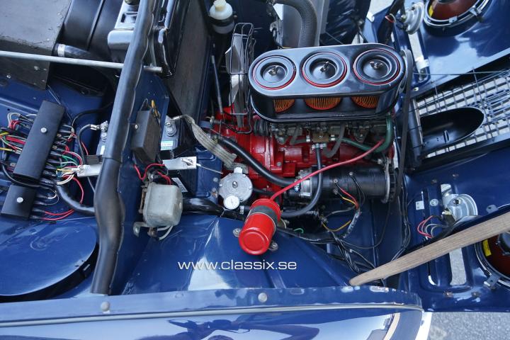 Engine: The original SAAB 96 Sport engine has just been broken in and was completely rebuilt with new pistons and gaskets, delivering 52 wild horsepower. The 4-speed gearbox was also original on the sport model, and SAAB always had the freewheel, so you do not need to use the clutch when you change gears. Another detail that is special for the SAAB Sport is that it has a special tank in the engine compartment for the two-stroke oil, so you never have to think about mixing the gasoline yourself when you fill up the car. The 1962 SAAB Sport also featured disc brakes up front.