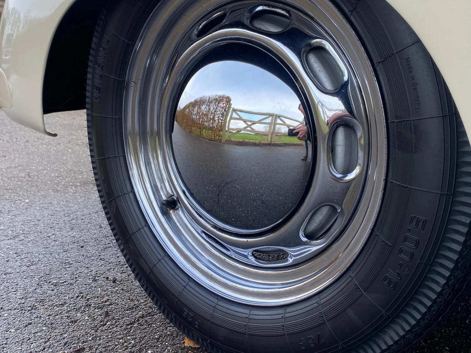 Beautiful Porsche 356 Pre A Knickscheibe coupé from 1954. This car has been ordered by the famous Porsche dealer Hoffman in New York. It was ordered as a standard coupé in black with a green leather interior with as only options: a sleeper seat and a pair of Bosch driving lights. The customer who it was ordered for was a Mr Plummer. Maybe Christopher plummer? The famous actor and Porsche enthousiast? At some point in the past the car has returned to Europe where it has been totaly restored and received this very elegant beige colour with a brown leather interior combination. The full body was restored before being painted and is still in outstanding condition. Mecanically the car has received a period correct 1500cc flat four engine, but not matching any more. Any records on why this car swapped engine is unfortunately unknown. The engine is completely rebuild aswell as the gearbox and runs as new. All other mecanical components also received a rejuvenation cure. Also all was kept as original as possible. Still in 6V configuration! The brown leather interior is in really good condition as is all the rest of the interior. The dashboard has its VDO gauges who are all rebuild and working well. You will notice the Telefunken radio is still in it's place. The front luggage compartment houses a chrome spare wheel and a new Optima 6V battery who is connected to a battery kill-switch underneath the dashboard. On the outside of the car you will find 2 Marchal driving lights, a Nurburgring badge and Reutter logo. A engine hood luggage rack comes with the car but is not fitted at this time. All the new chroom wheels have been wrapped with new period looking tyres in size 5.00-16. If you are looking for the ancestor of all Porsche's, than this is the real deal.