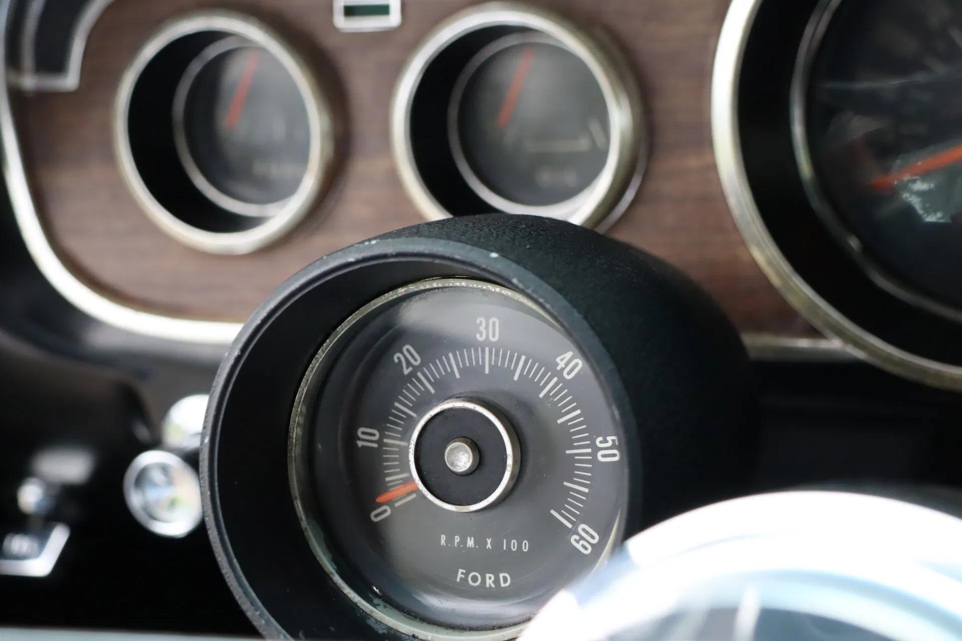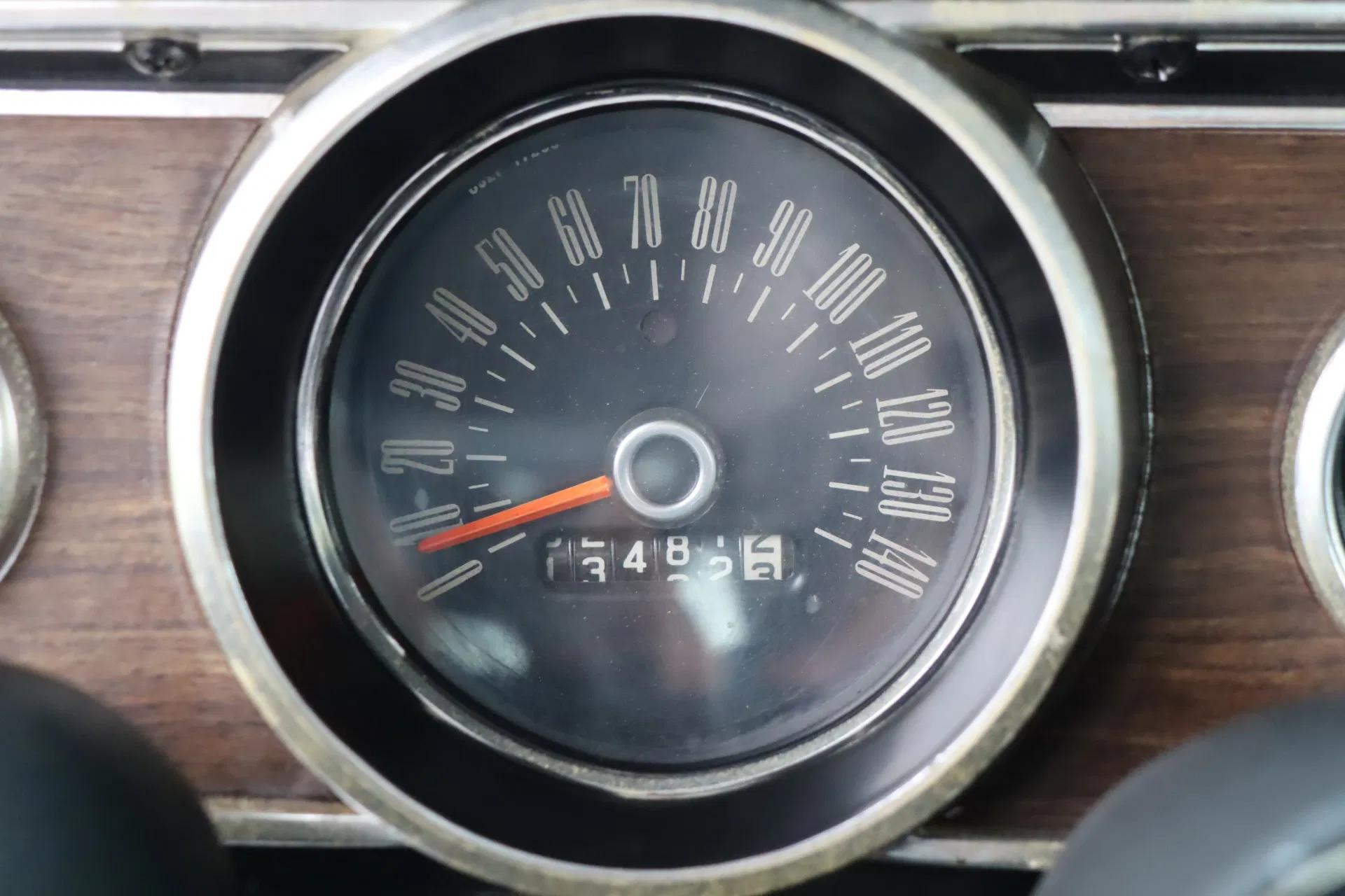 The black Pony interior is still in good condition. The upholstery is finished in black leatherette. The driver looks out over the distinctive wood/aluminium steering wheel and deep dials. A “rally pack gauge cluster set” with a tachometer and clock has also been installed. The original Ford radio is still present. The dashboard and instruments are in good condition. The panel and headliner upholstery and floor covering are also in good condition. The air conditioning has been refilled. The interior is an ideal combination of comfort, originality and classic looks. What's more, the Mustang is a 2+2, allowing four people to enjoy the Mustang driving experience.