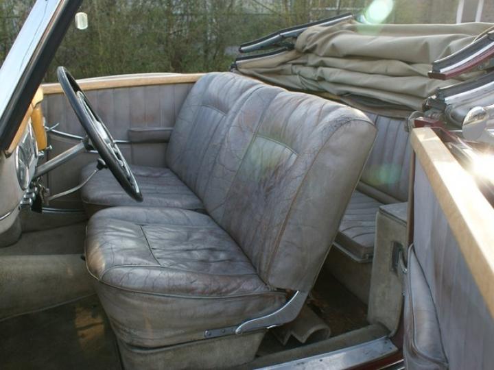 This is a Mercedes Benz 170S convertible A from 1950. Originally the car came from Switzerland. It is a matching number car, so it still has the correct engine after 66 years. This A convertible is in a fairly good condition. The 2-tone paint has some damages. The chrome is pretty nice. The leather interior is still the first from factory and shows her patina after all those years. The wood is in a good condition. They’ve converted it to a 12V in the past, but that is only an advantage. With luggage set from factory. It is a nice 170S convertible A for a Mercedes Benz collector.