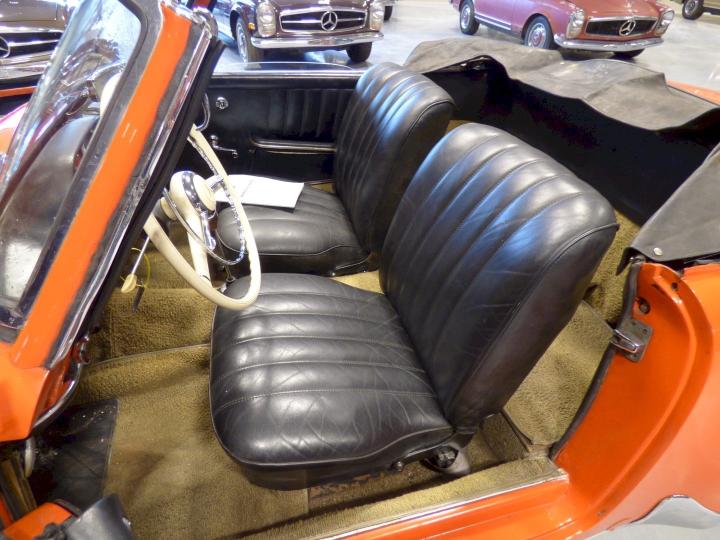 This specific cabriolet hit the roads in 1961 and has a black Soft-top. It includes a Solex carburetors set and Bumper guards. This 190SL has a 4-Speed manual transmission and comes with power brakes. All in all this 2-seater is in nice shape against a fair price level.