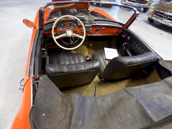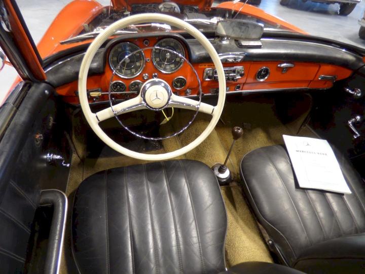 This is a matching numbers red Mercedes-Benz 190SL. These two-door luxury roadsters where produced by Mercedes-Benz between May 1955 and February 1963. A prototype of this model was introduced at the 1954 New York Auto Show.