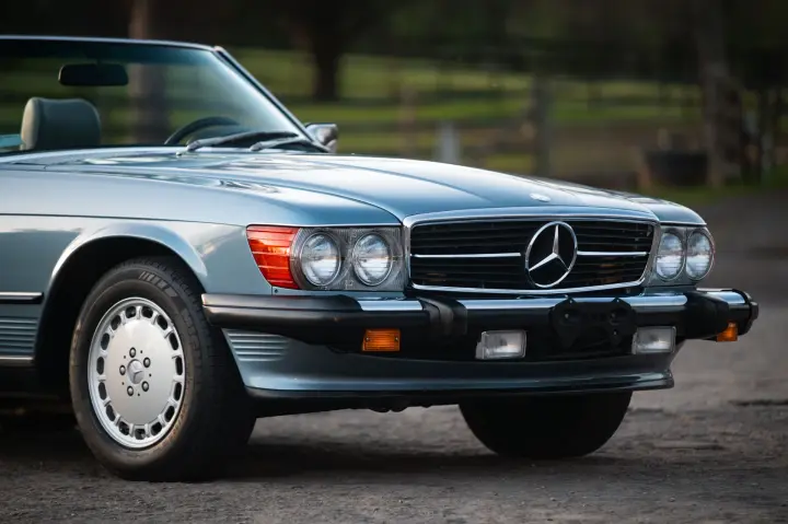 This absolutely STUNNING 560SL two top Roadster is as beautiful in person as the pictures reflect. We have posted 144 pictures to endorse our claim that this is a really special 560SL.If your online venue does not show 144 pictures go directly to WWW.JPFRAZIER.com to review the entire posting. The car was a one-owner car from Tucson, Arizona, until we bought and resold it to a local mature buyer in 2019 with 27,656 miles. Obviously, the car was not used much, and he traded it for another car. We again sold it to a mature buyer in North Carolina, who only had the car for a little over a year before bringing it back to us to resell, as they traveled too much to enjoy it. Both buyers put very few miles, but a lot of work into the car while in their possession. The car has never suffered from an accident or inclement weather. The car shows as a new example from 1986 in every way. When reviewing the pictures posted, note how straight the original car is as well as how crisp and new all bolts, stickers, trim, leather, carpets, door cards, wheel finish, engine compartment, trunk compartment, ALL LOOK NEW!!! This is an incredibly well-preserved example.