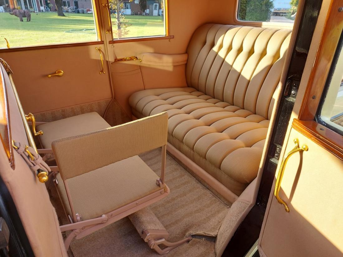 Mr B. Jackson from Canada ordered the chassis by Rolls-Royce Ltd in Great Britain. The chassis was brought in through Rolls-Royce of America in New York to have this sporty limousine body mounted at the Brewster works there. In 1960 the car was offered for sale as part of of the estate of the late owner. Mr. Fred D. Berkeley of New York bought the RR in 1960 from a museums situation in Toronto Canada. Driving the car to Rochester in The USA revealed that the cooling system had detoriated in storage. It had to be flushed out at least 3 times on the 180 miles ( about 280km )trip. Also was noted a hum in the rear axle. Since Somewhere in the period 1960-2000 the body has been completely professionally repainted and reupholstered. The color is black over cream yellow. The front seat was done in black Connolly leather, while the rear was uphostered in West of Ebgland cloth. To give the rear compartment a special aura, the owner hadthe hardware gold plated. In the sixties the engine was sent to Ed Lake in Springfield MA for a complete rebuild ( pistons, rod and main bearings ). The fuel system (carburettor, autovac and piping) was completely overhauled by Roy Bertch, nationally known carburettor guru. Electrics have all been reconditioned and made functionally reliable. The owner and Mr Bertch dissambled the differential in 1966 to correct the backlash wich caused the hum noted on the trip from Canada to Rochester.The overheating was solved with a new aluminum head and filter divsed to catch any further detritus which may accumulate.. During 1997-1998 the brakes were professionally overhauled and new Dunlop tires fitted. On march th 4th 1961 the odometer reads 59.555 miles.This Rolls-Royce has accumulated only 17.427 miles in the last 60 years. The odometer reads 76.982 miles at this moment. A diary of the car from 1961 till 2002 in which Mr Berkeley wrote down all repairs and expenses goes with the car as well as a service and instructionsbook. In 2000 Gloria A. Austin of Weirsdale Fl bought the car. She kept the car till the car was sold to a private collector in Germany.