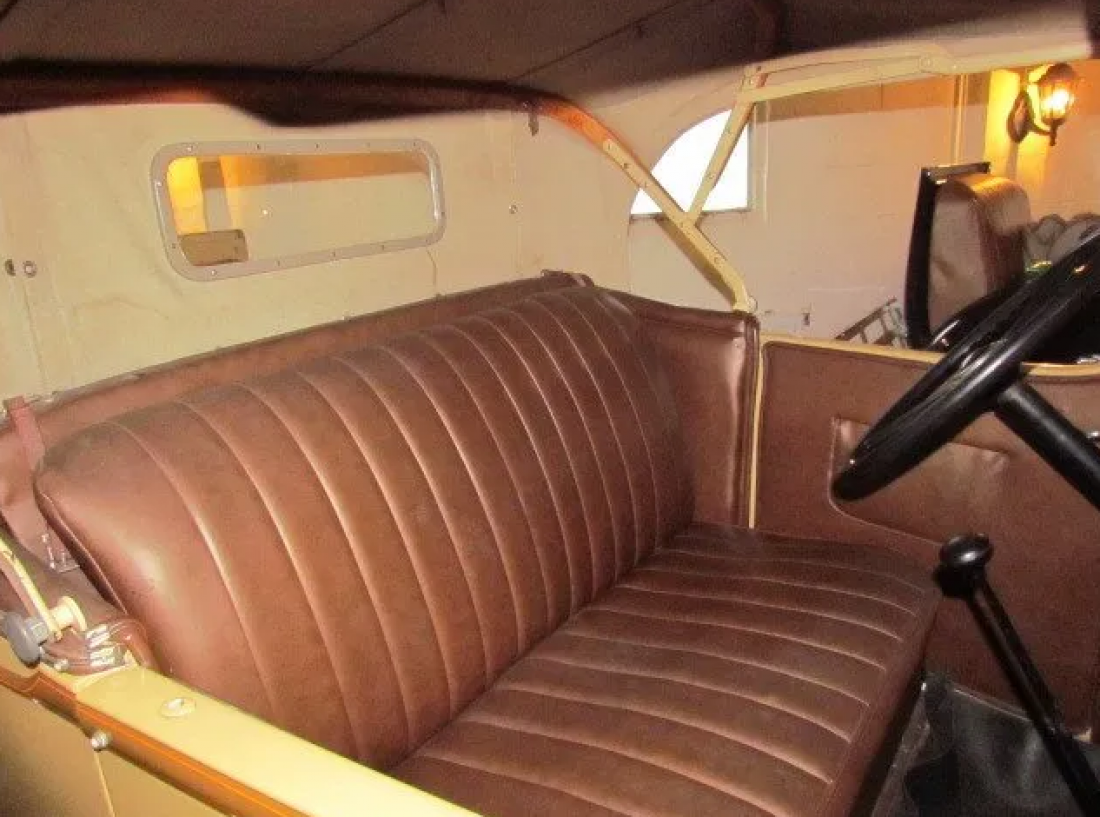 This car comes from Florida where it has been restored. The sheet metal is beautiful and good, the paintwork is neat. The engine runs well and the car drives well. As accessories, the car has tires with white side, 2 spare wheels with chrome mirrors in the front fenders, cowl lamps, a chrome stoneguard and a luggage rack with a nice matching case. The mother-in-law seat can accommodate 2 people, so that you can experience a pleasant day out with 4 people.