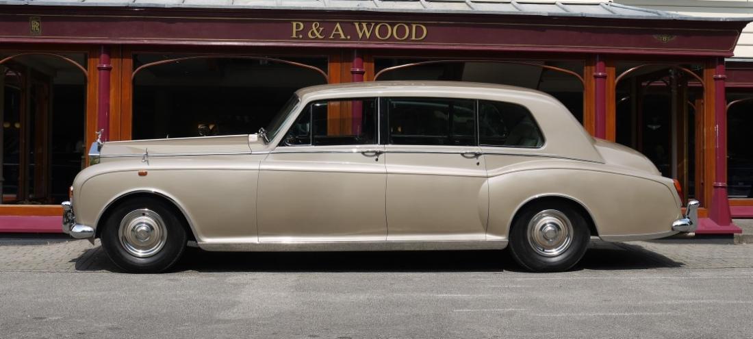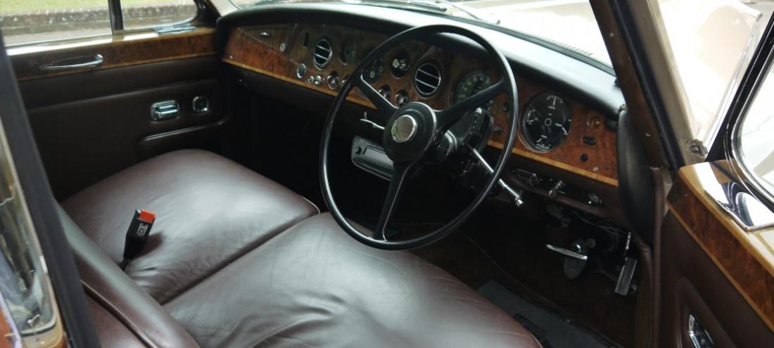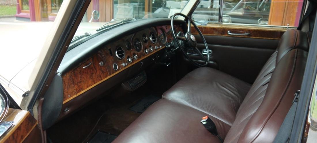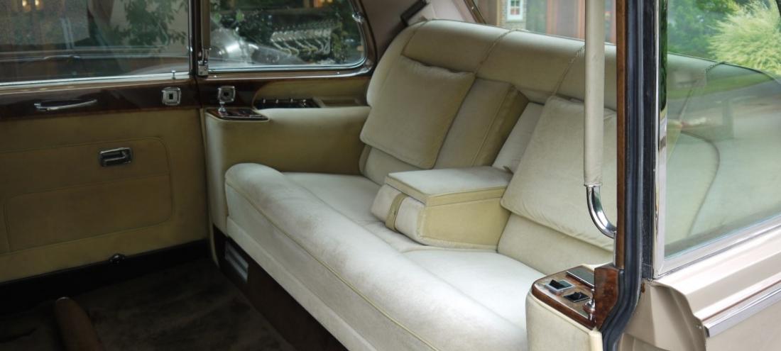 Silver Sand with Dark Brown hide to front and Cream Savoy Velvet to rear. Only 28,000 miles from new. Recently re-painted to a very good standard. Only three owners with the first until 2010. Sold by P & A Wood to the subsequent two owners. Fitted with picnic tables to the centre division, electrically operated rear seat, velvet rear head cushions, extended chrome waist moulding, stainless steel strips to wheel arches and sills and chrome finishers to centre pillars. Very unusual to find with such low mileage. Excellent unrestored condition with a lovely original interior. Chassis number PRH4859.