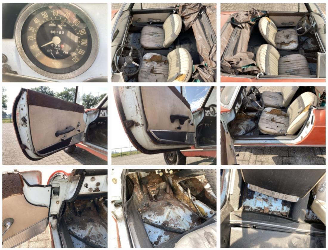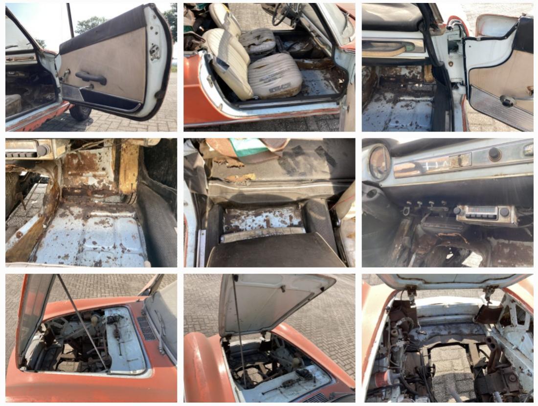 Originally delivered in light blue, with a light beige interior, the car was painted orange in the past. Some light nose panel damage, which will be easy to fix.