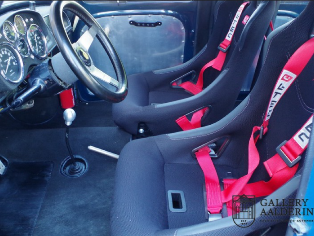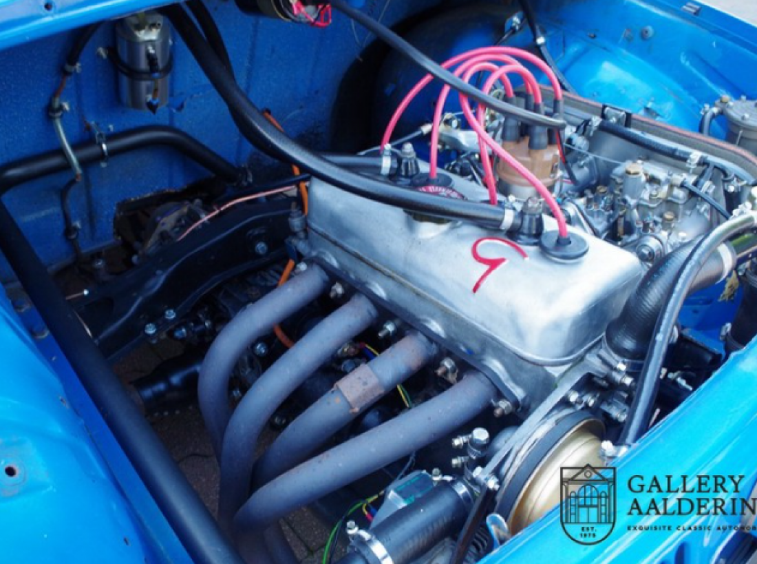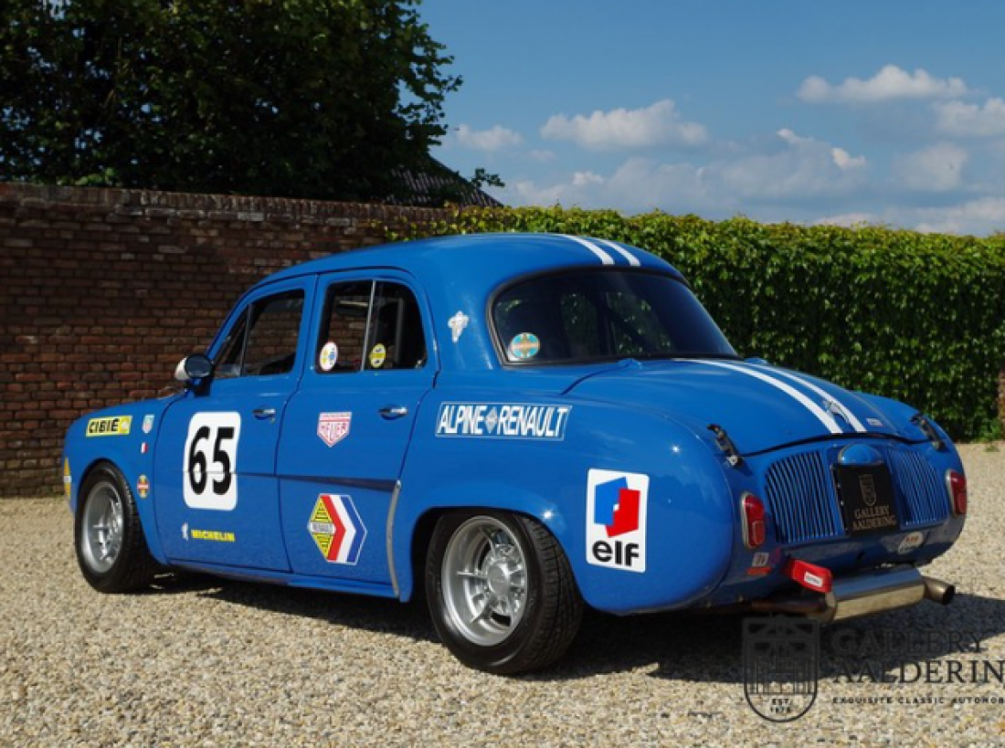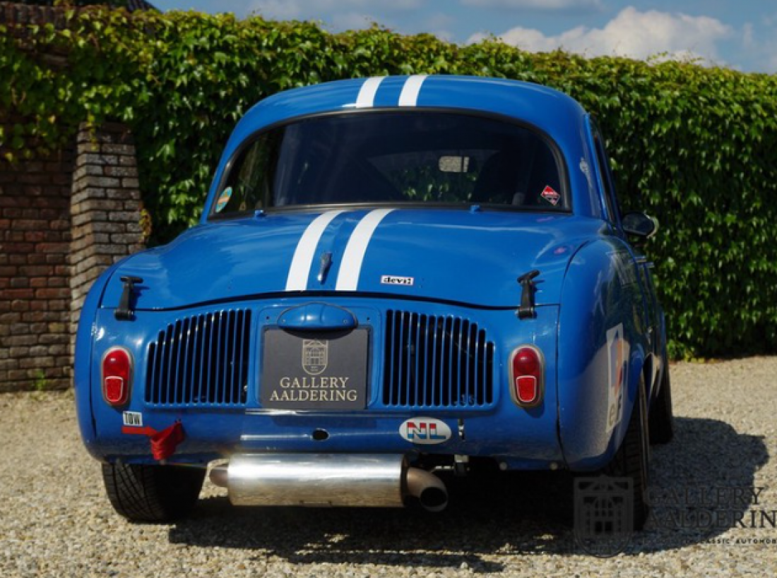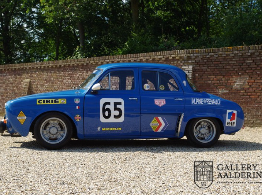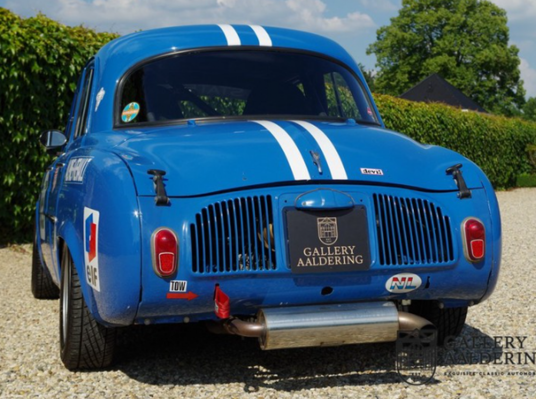 This unique Renault Dauphine with Gordini specs. belonged to a Renault dealer for some 20 years. It participated and was photographed on a number of occasions in the HARC classic races at the Zandvoort circuit in the 80’s. Mainly A110 components were used in this car. At the time, although readily available, they were expensive. This particular Dauphine has a 115 Hp 1300 G engine with two twin carburettors, double rear shocks and a 5-speed gearbox. The 1300G engine is an original Alpine/Gordini engine. In the spring of 2017 Tour de Corse, a Dutch Renault Classic specialist, completely mechanically refurbished the car.The bodywork was also taken in hand at this stage as well. So the car not only drives like it should, it also looks the part! This is a unique super-light, seriously fast Dauphine with a great racing pedigree. You wont find another one like it in the world!